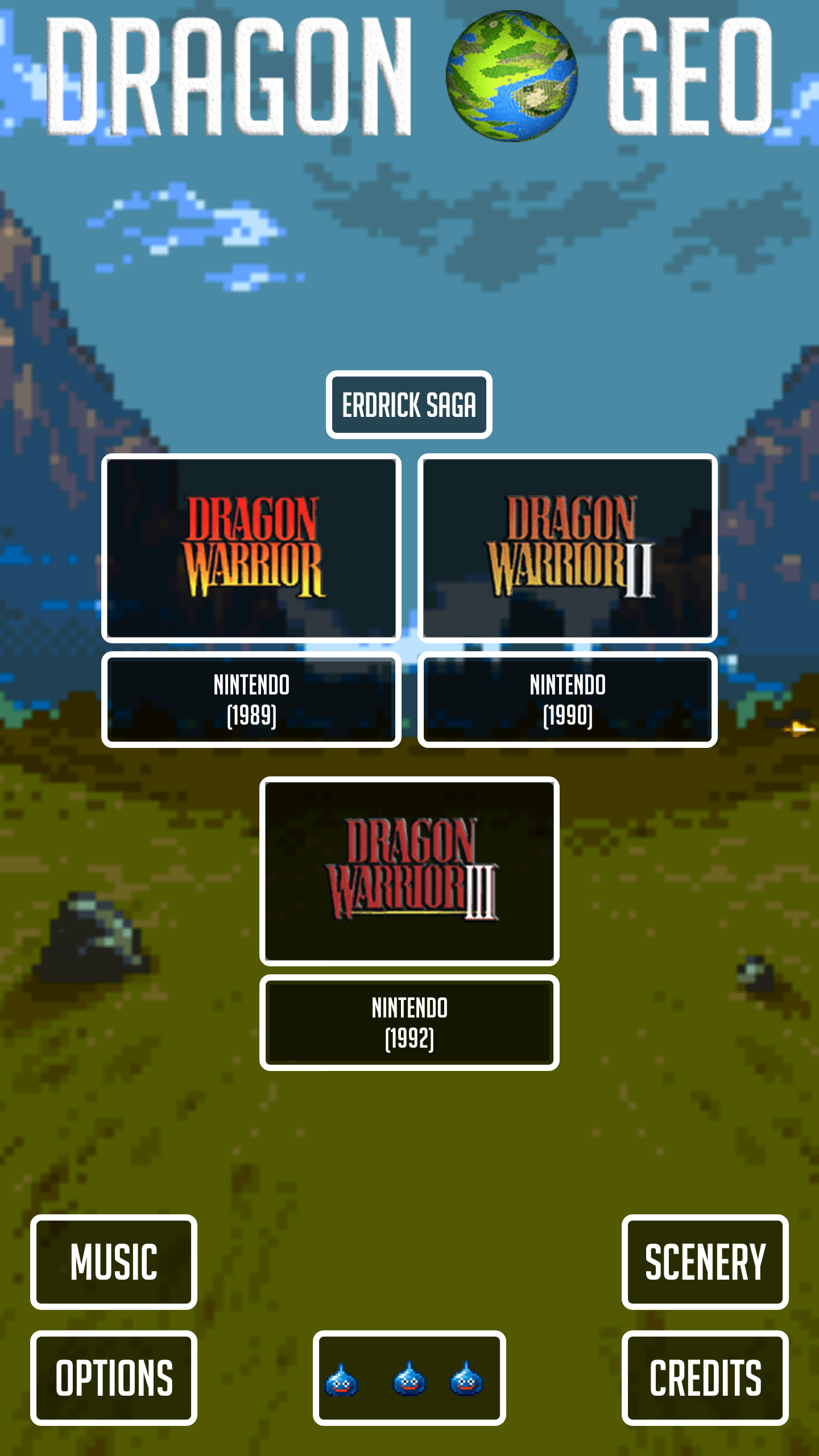 DRAGON GEO is a fan application and is not associated with or endorsed by SQUARE ENIX. © ARMOR PROJECT/BIRD STUDIO/SQUARE ENIX All Rights Reserved. © DRAGON QUEST, DRAGON WARRIOR are registered trademarks of Square Enix Co., Ltd. All DRAGON WARRIOR, DRAGON QUEST images, logos, names, music, and related media are intellectual properties of SQUARE ENIX unless otherwise noted.