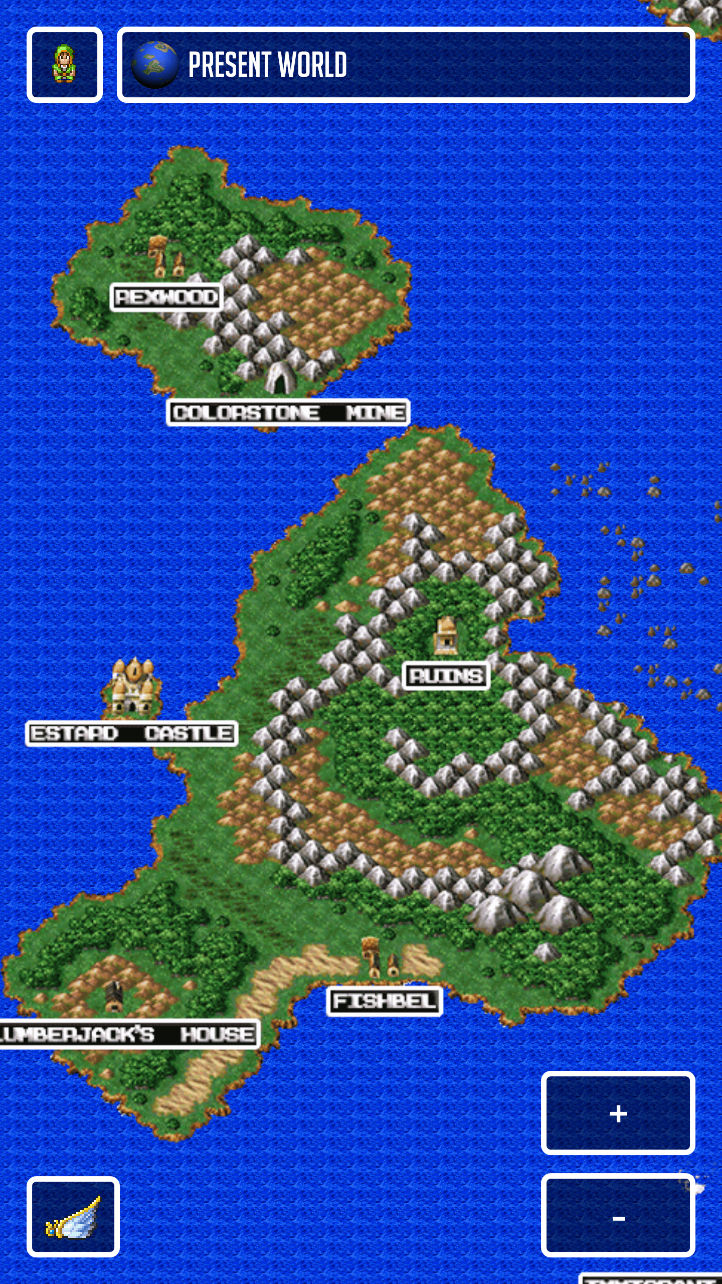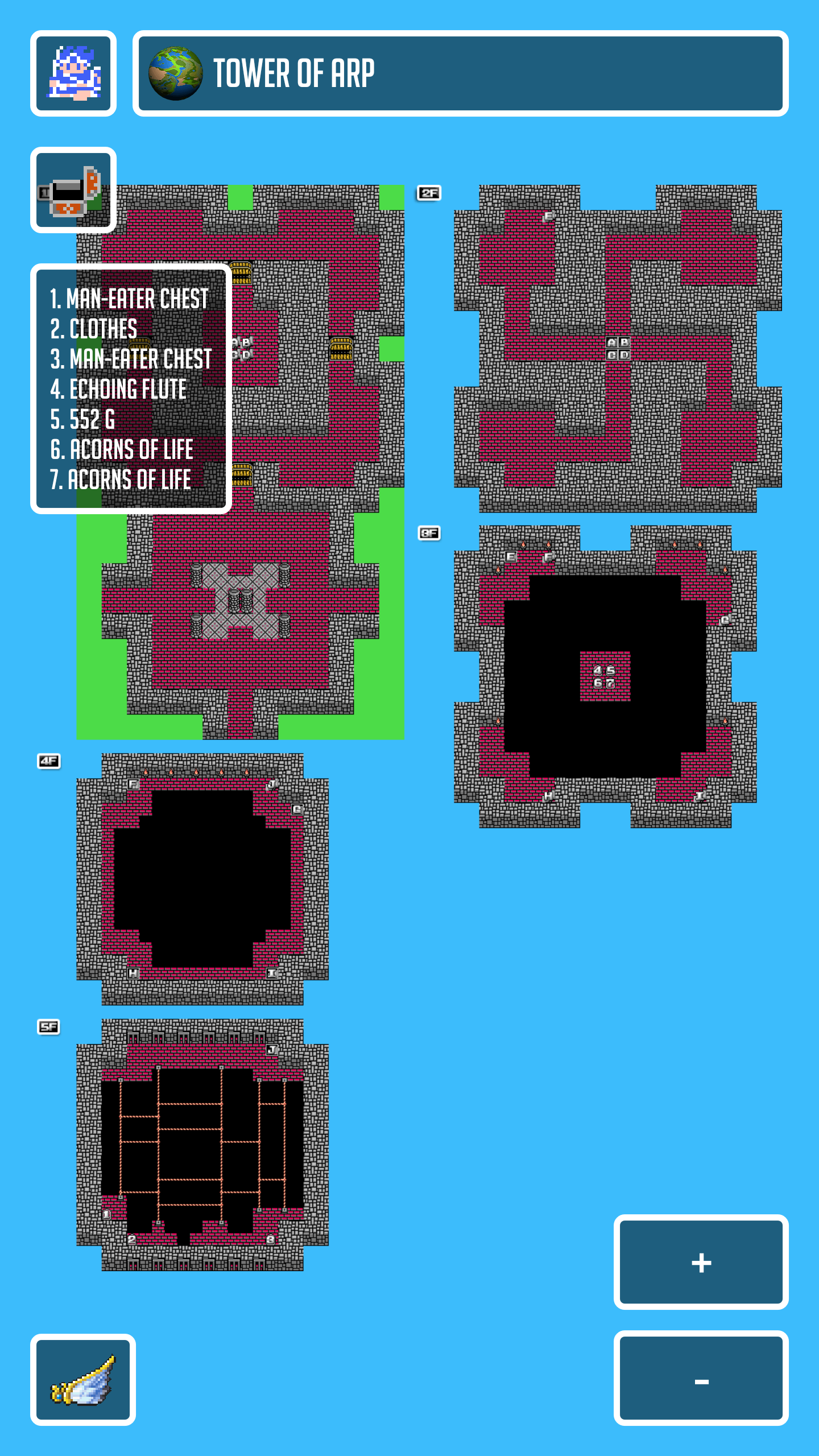 - Map details including shops and treasure info