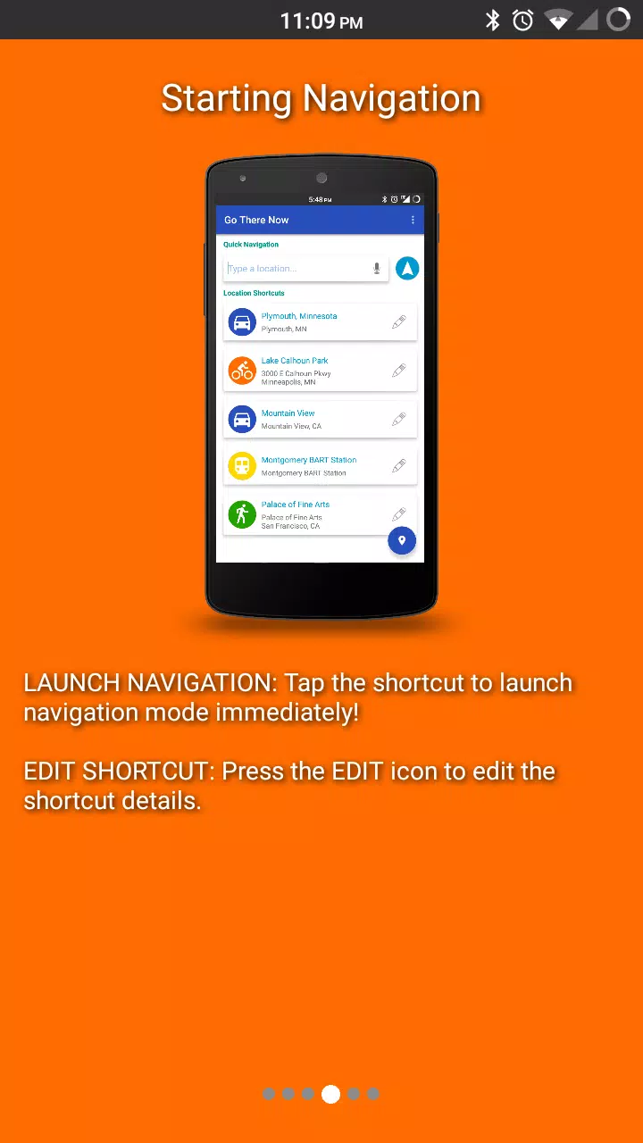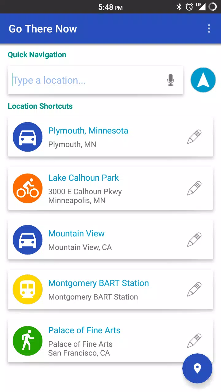 Go There Now is an Android and Android Wear utility application that acts as a front-loading shortcut system for Google Maps. It allows users to manage favorite locations in a single place and start navigation with a single interaction.