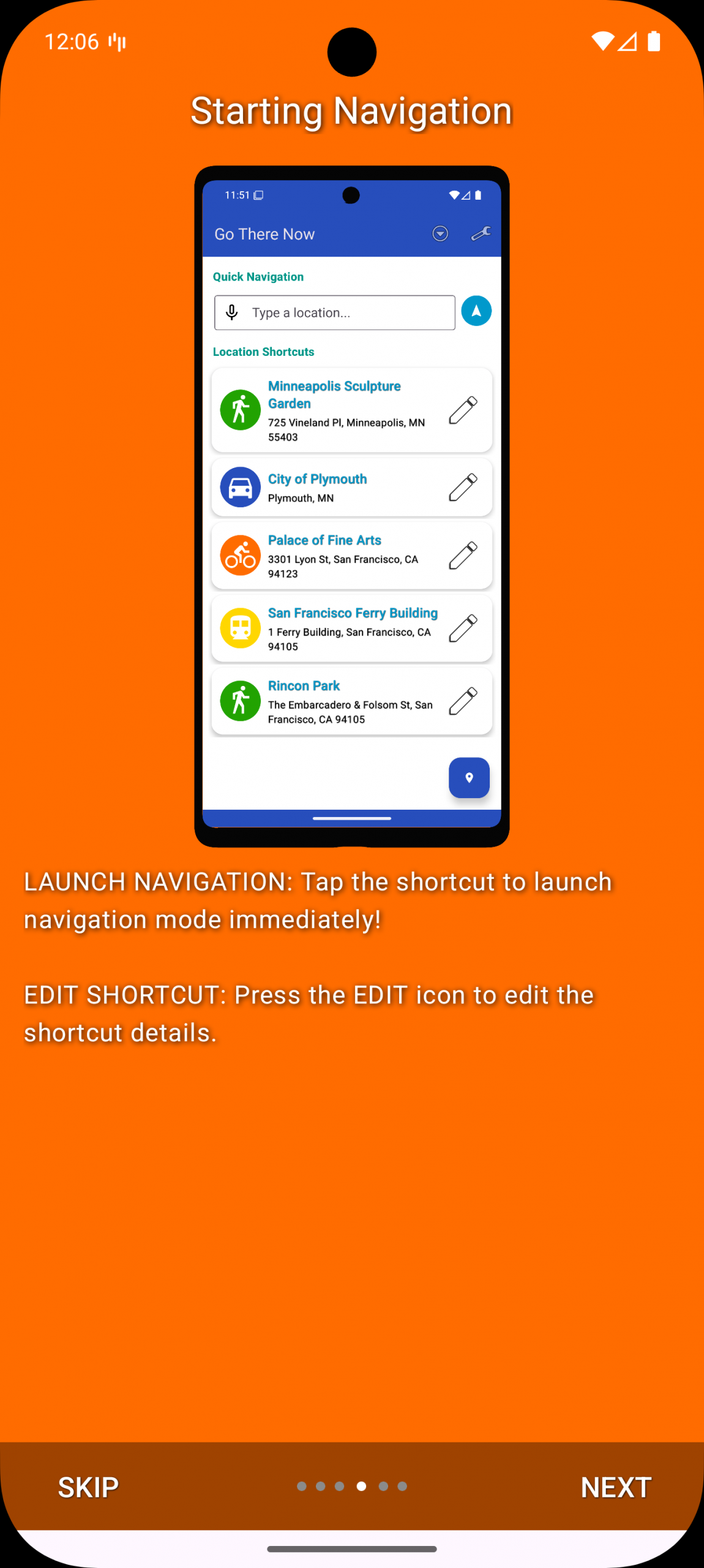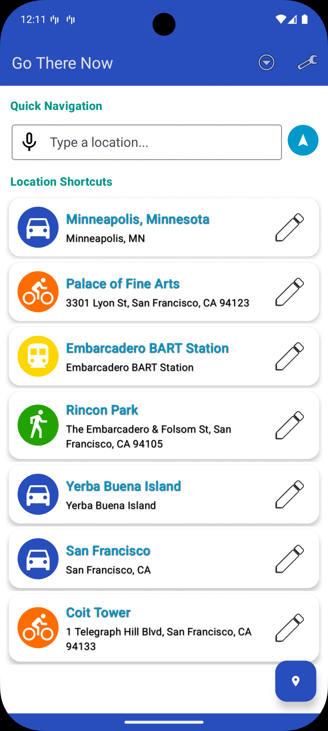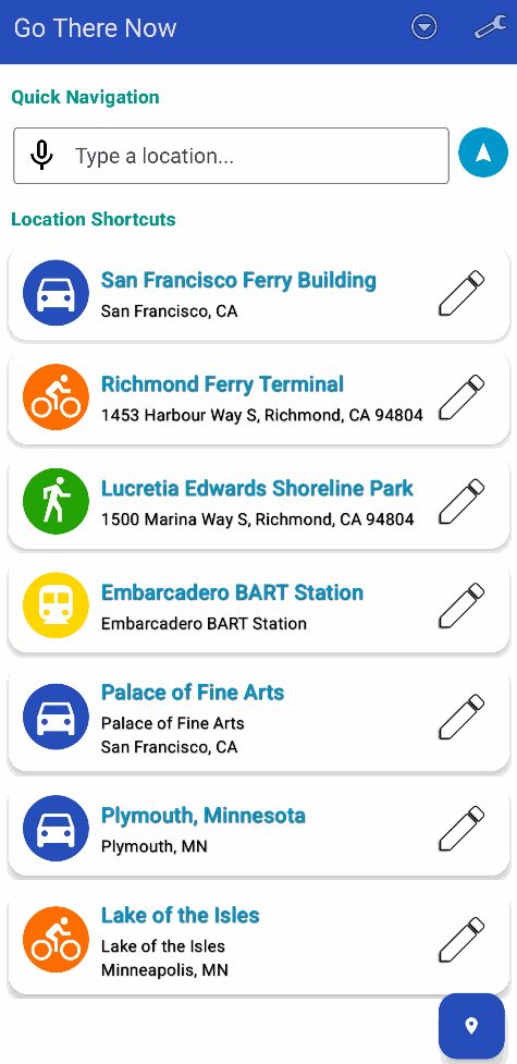 Go There Now is an Android and Android Wear utility application that acts as a front-loading shortcut system for Google Maps. It allows users to manage favorite locations in a single place and start navigation with a single interaction.